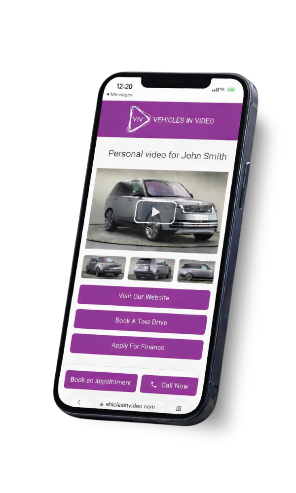 Customers are directed to your branded landing page to watch their personalised video including vehicle imagery, contact details and CTA's.